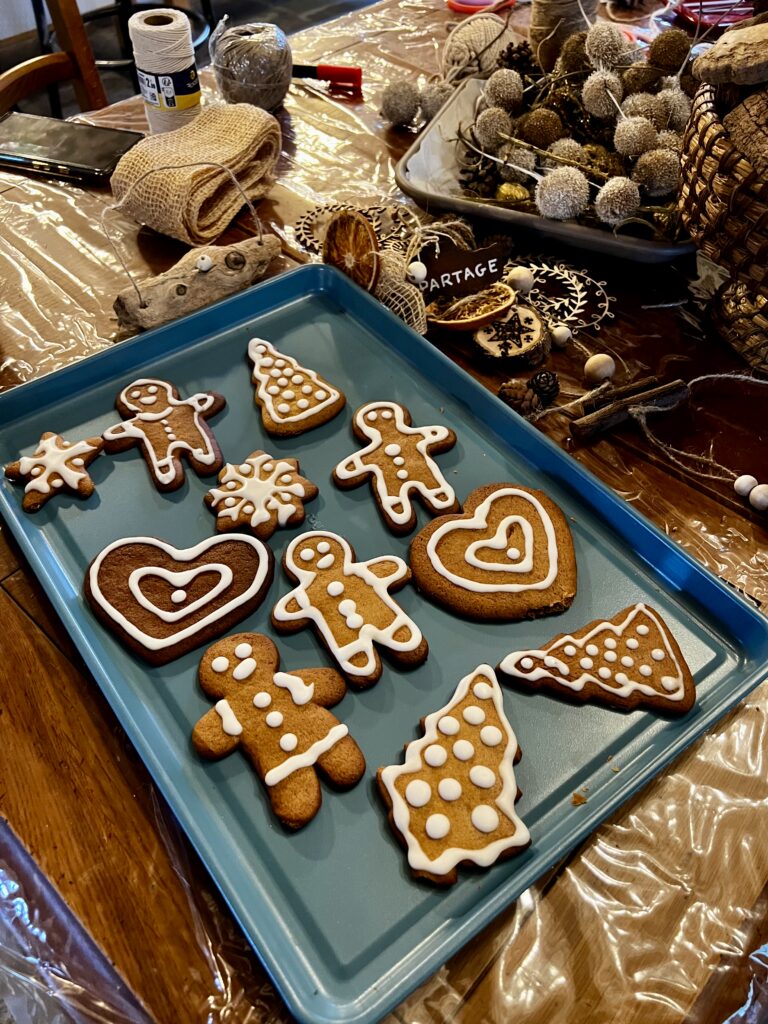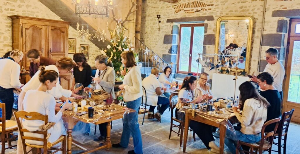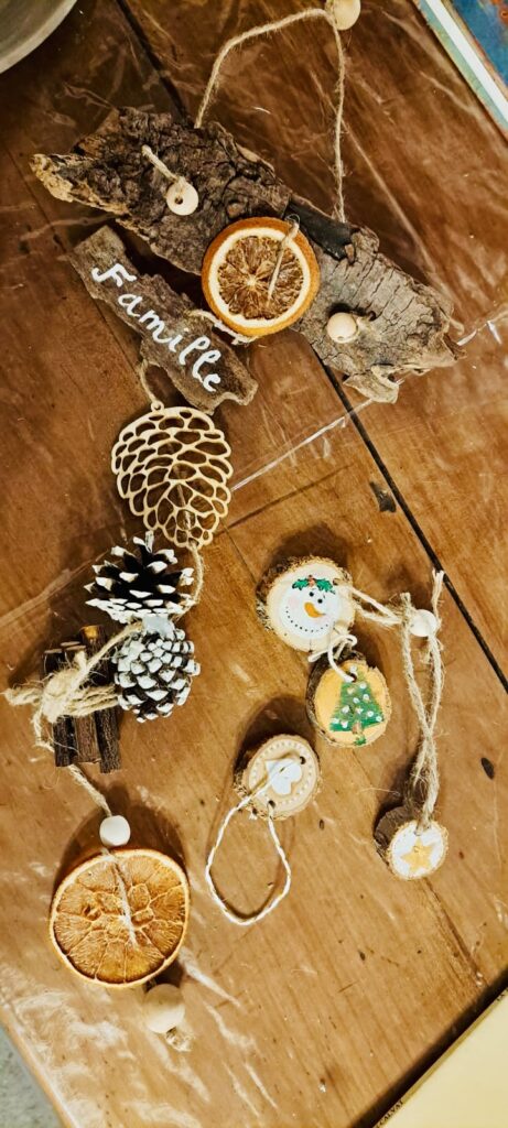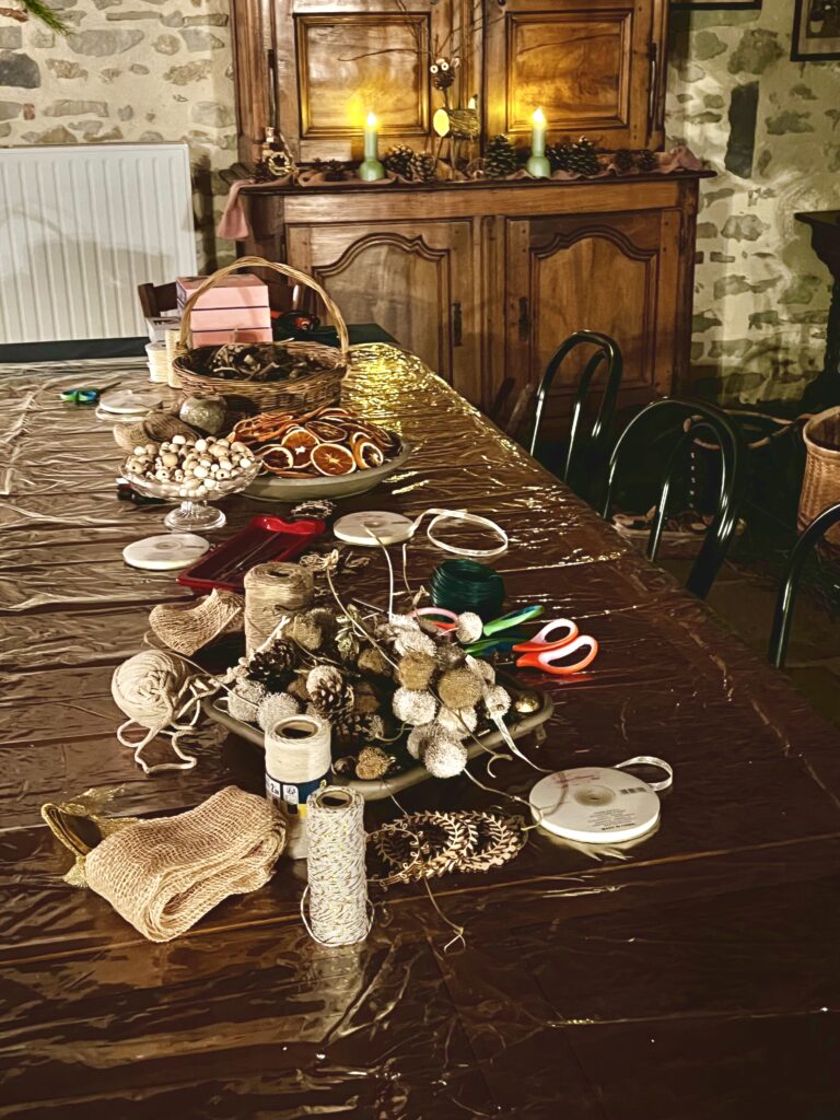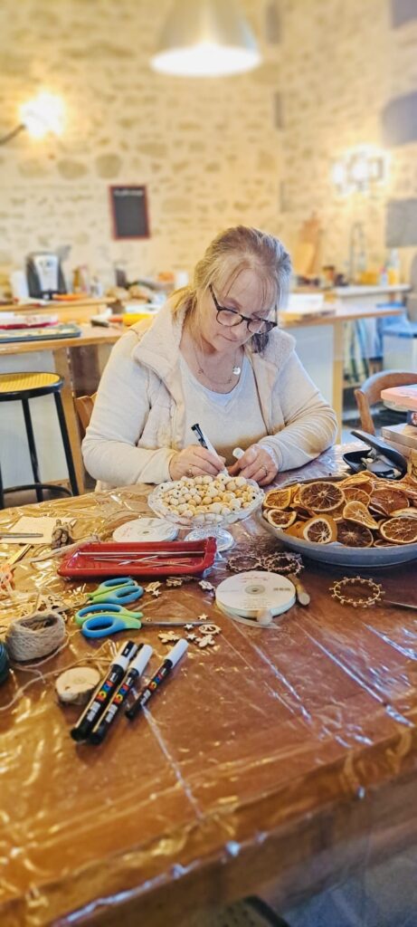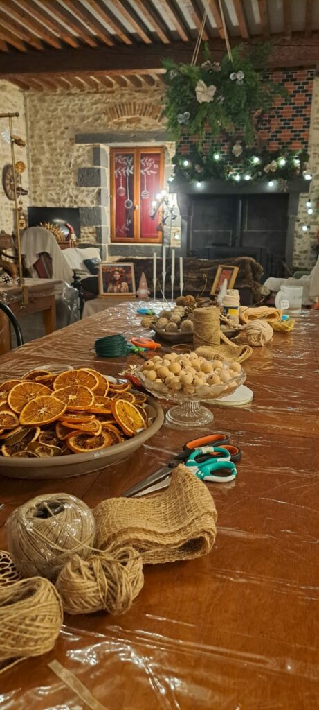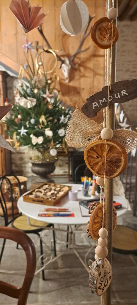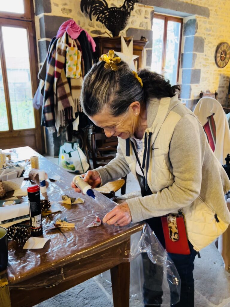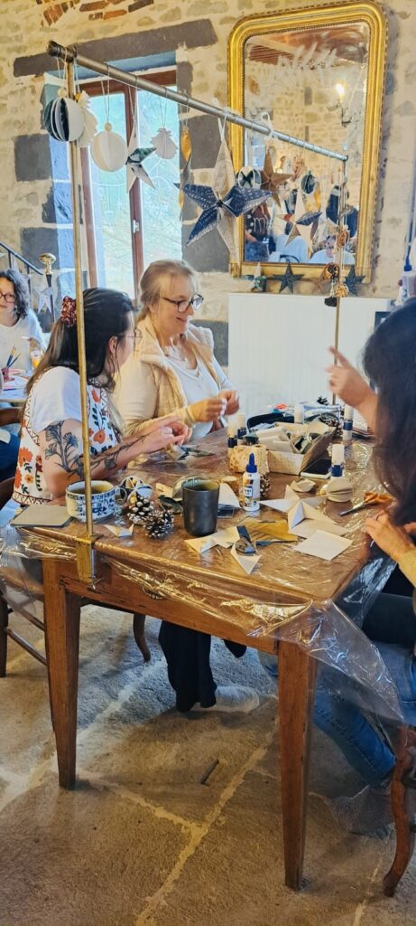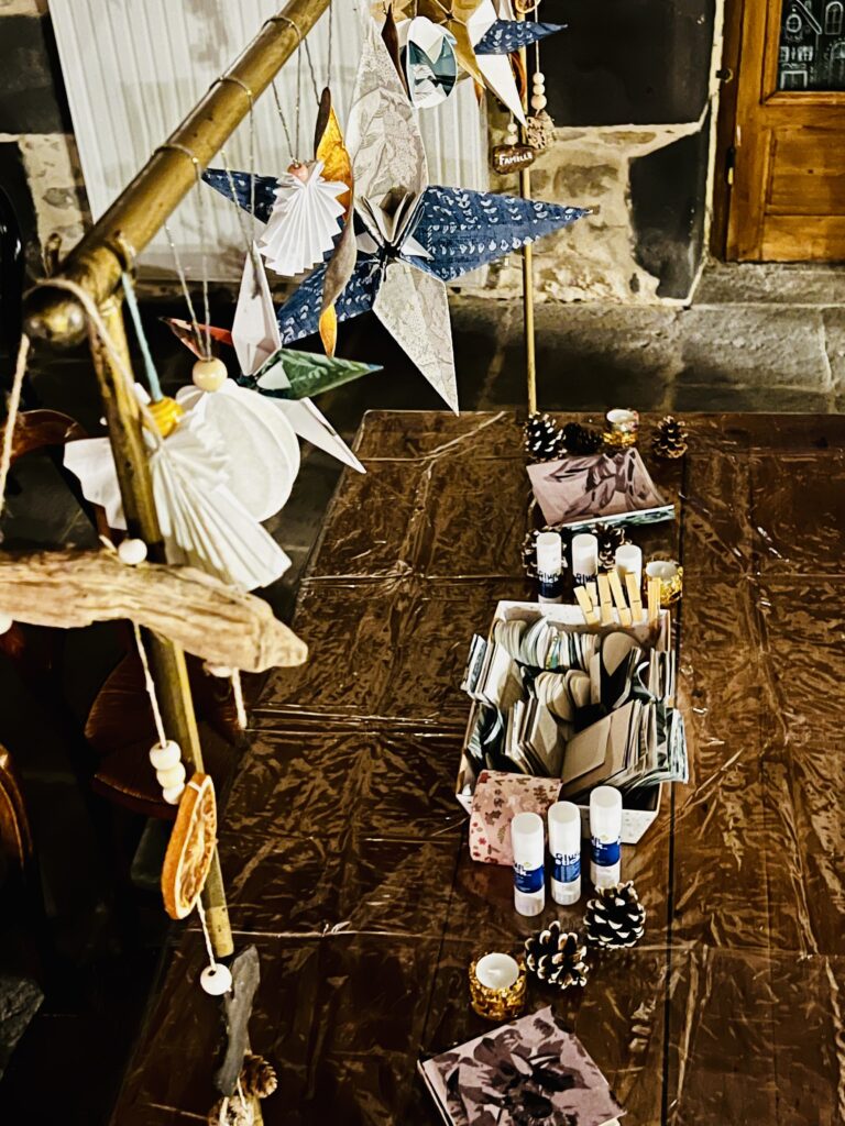 Différents ateliers, bois et origami pour confectionner des décorations de Noël ; cuisine pour réaliser des « pappercakes », oracles, yoga…. encadrés par Anne Tichit, Vanessa et Christine d’Équinoxes.