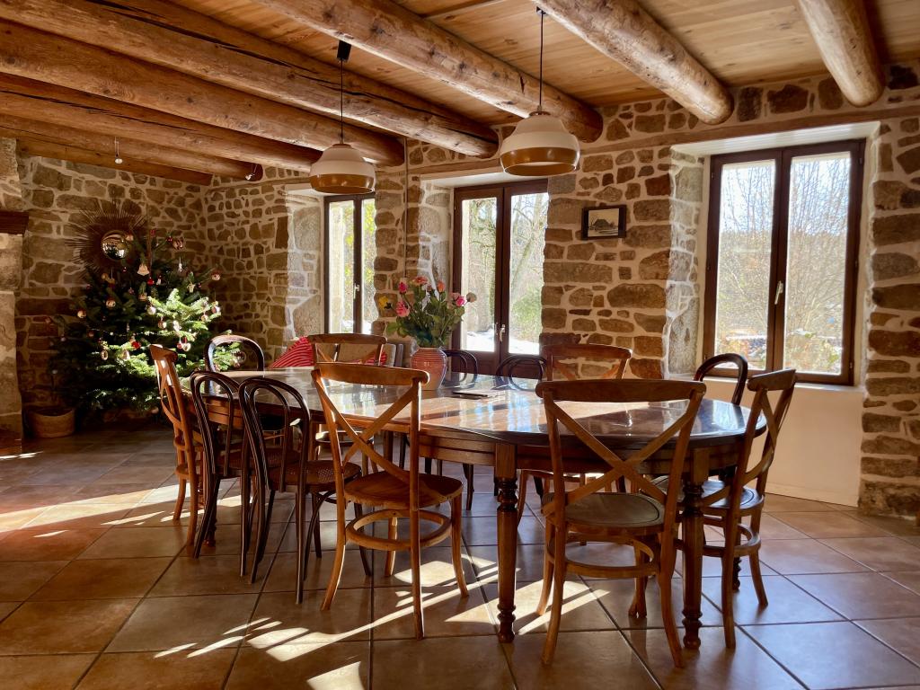 Construite en lisière d’une immense forêt sur un terrain de 2,5 hectares, la maison est située dans un hameau très calme à quelques minutes du village d’Echandelys.